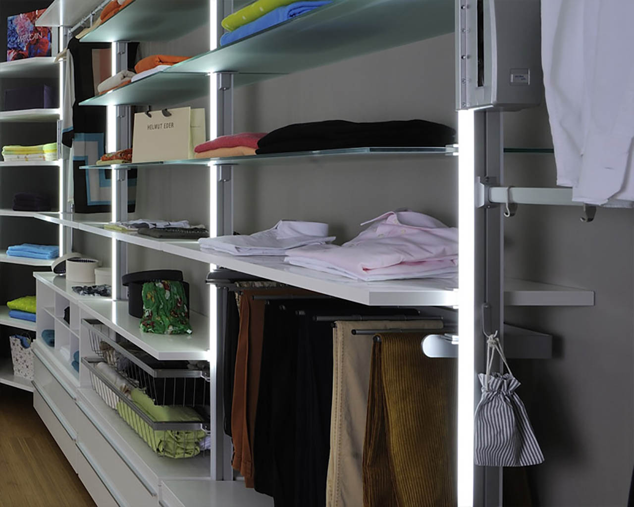 Die 3teiligen Trägerprofile aus hochwertigem Aluminium, bilden die Basis zu den Schranksystemen unserer Produktlinie PREMIUM. Zwischen den Trägerprofilen können in unseren Standardbreiten 50,0 cm, 80,0 cm und 100,0 cm verschiedene Schrank- und Funktionselemente wie z. B. Schubladenschränke, Kleiderstangen, Hosenhalter, Böden u.v.m. befestigt werden.