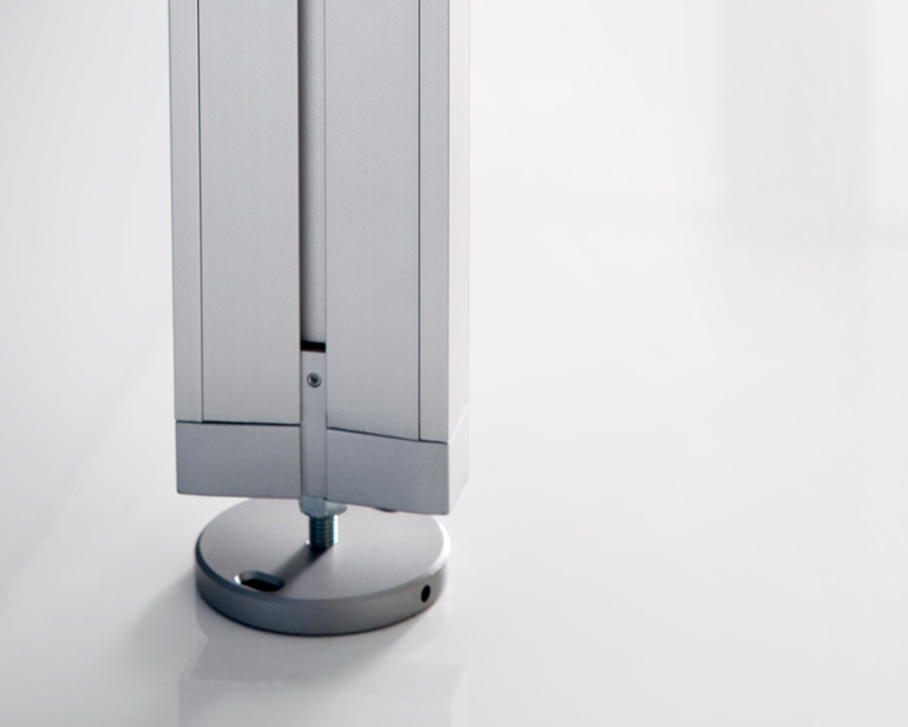 Die Alu-Profile lassen sich mit einer herkömmlichen Metallsäge auf das gewünschte Maß kürzen. Bodenunebenheiten können bis zu 2 cm mit den höhenverstellbaren Füßen ausgeglichen werden.