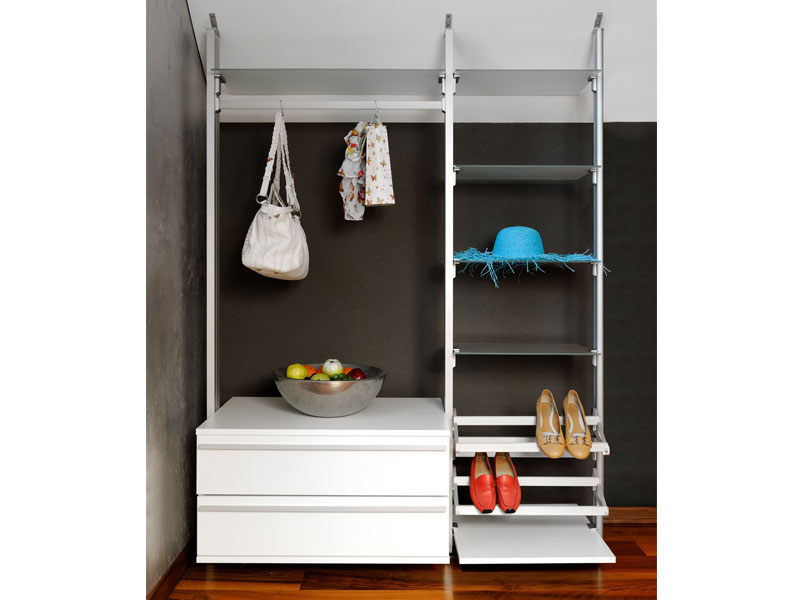 Die 3teiligen Trägerprofile aus hochwertigem Aluminium, bilden die Basis zu den Schranksystemen unserer Produktlinie SOFT. Zwischen den Trägerprofilen können in unseren Standardbreiten 50,0 cm, 80,0 cm und 100,0 cm verschiedene Schrank- und Funktionselemente wie z. B. Schubladenschränke, Kleiderstangen, Hosenhalter, Böden u.v.m. befestigt werden.