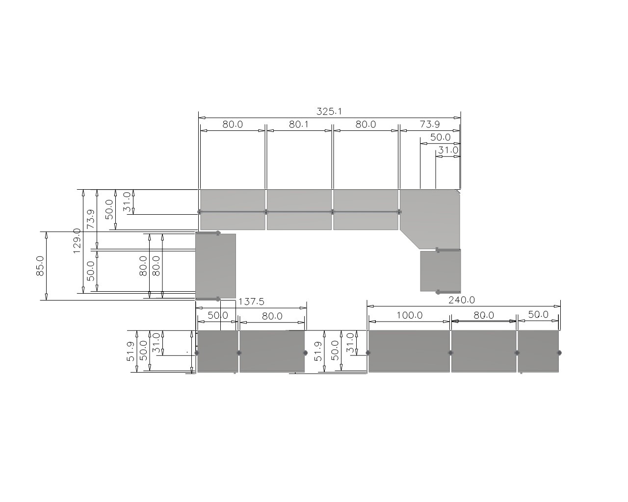 - Modul 2: Raumteiler B/H/T 243x295,5x54 cm
