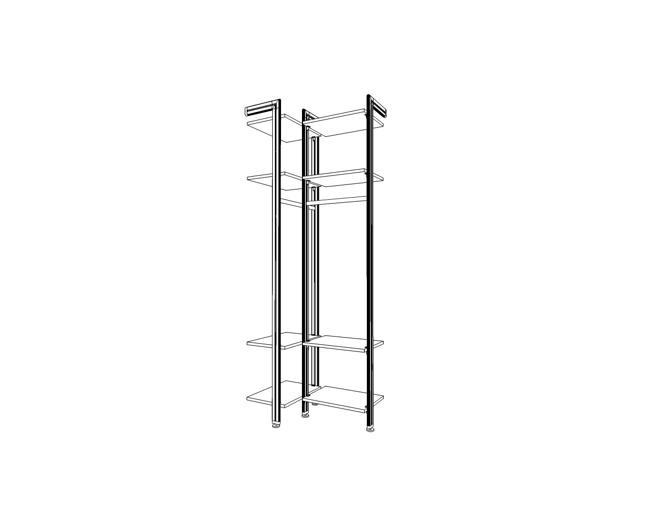 Eckvar. 3 mit 4 Böden + 1 Kleiderst. je Seite H 229 x T 36 x B 54/91