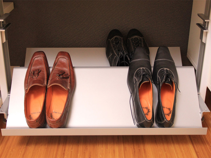 Geschlossene Schuhablage für Schranksysteme in 2 Systembreiten erhältlich.