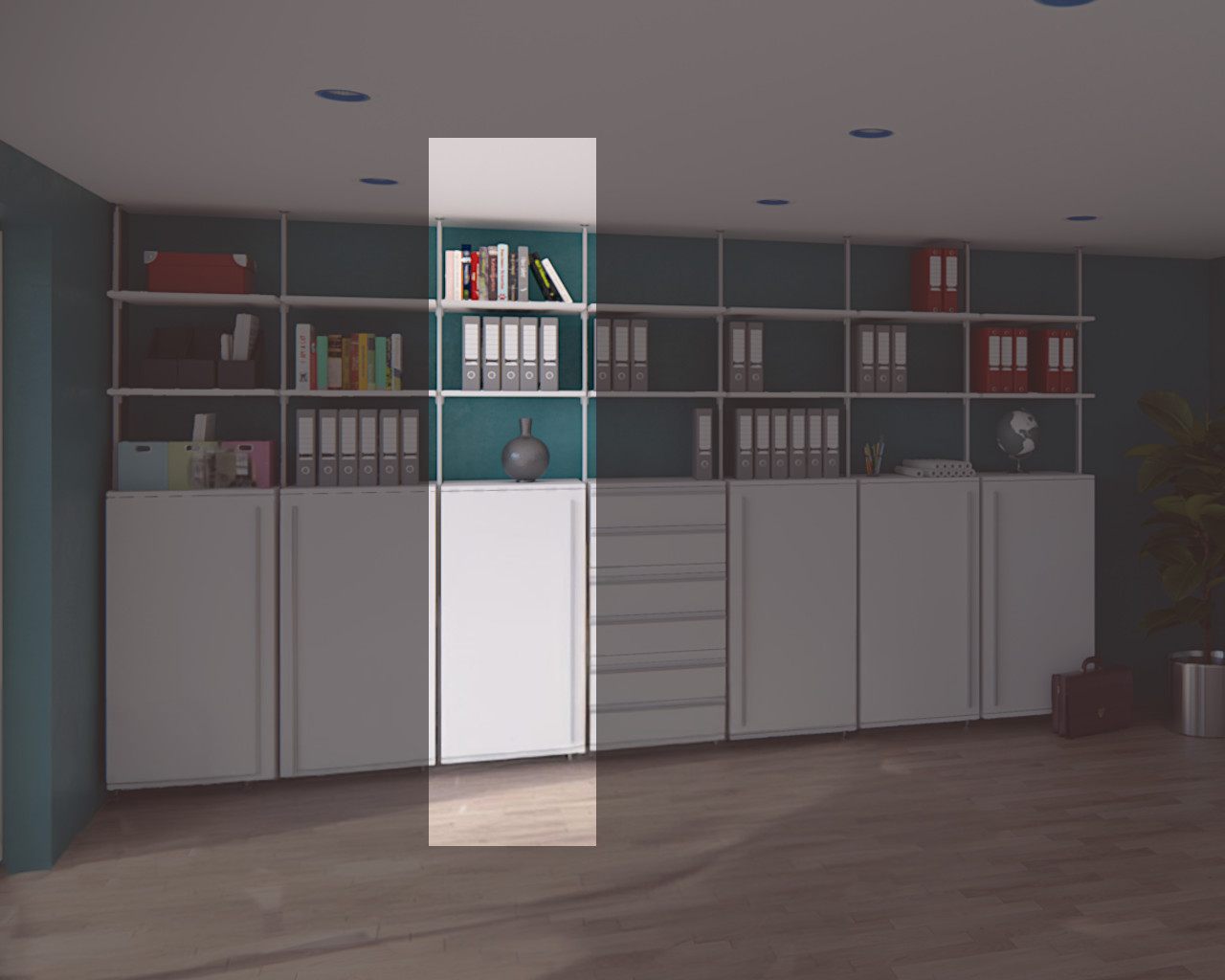 Erweitern Sie die Bürowand nach Belieben mit unseren Schrank- und Funktionselementen.