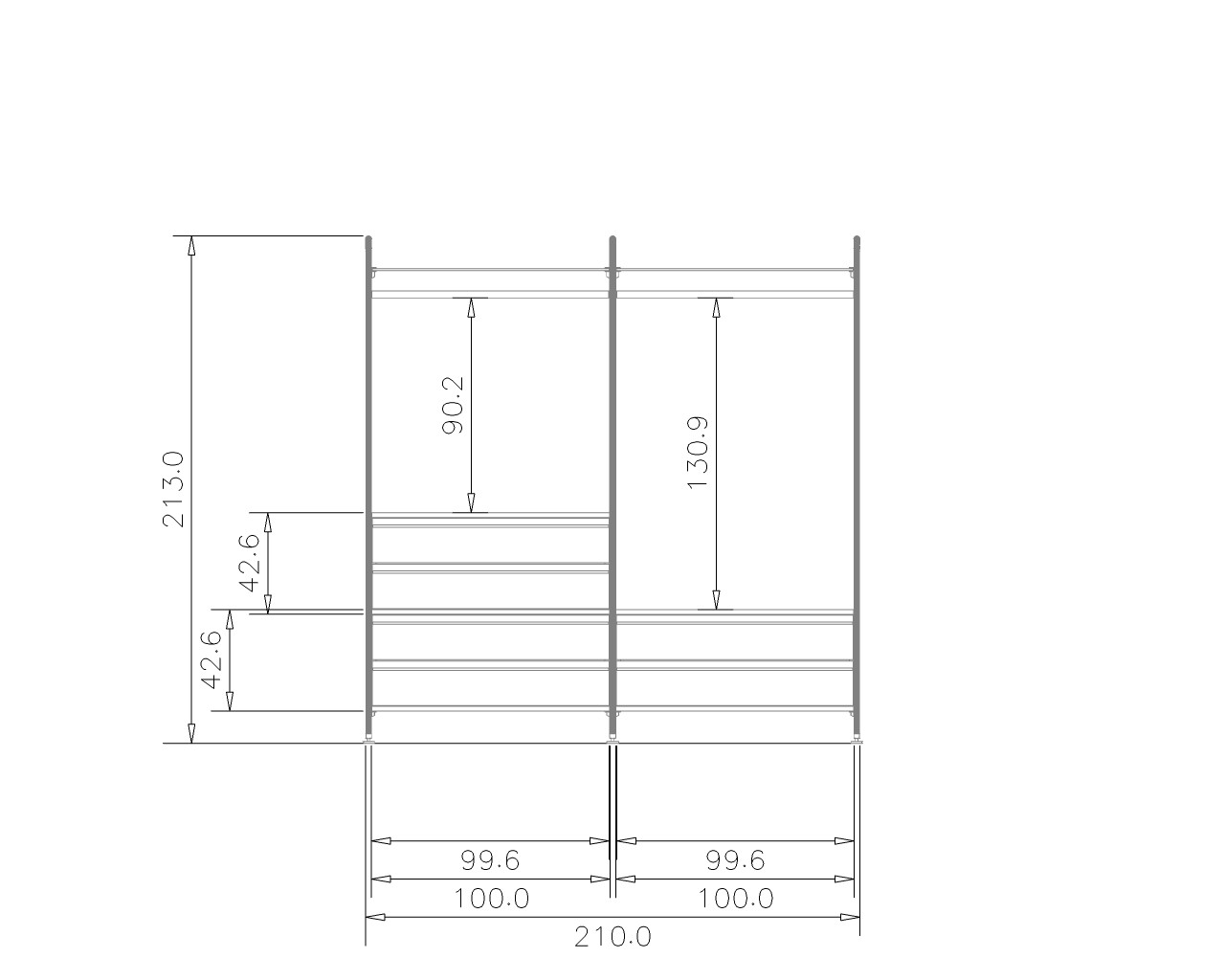 Breite: 210 cm | Höhe: 213 cm | Tiefe inkl. Griffleiste: 54 cm