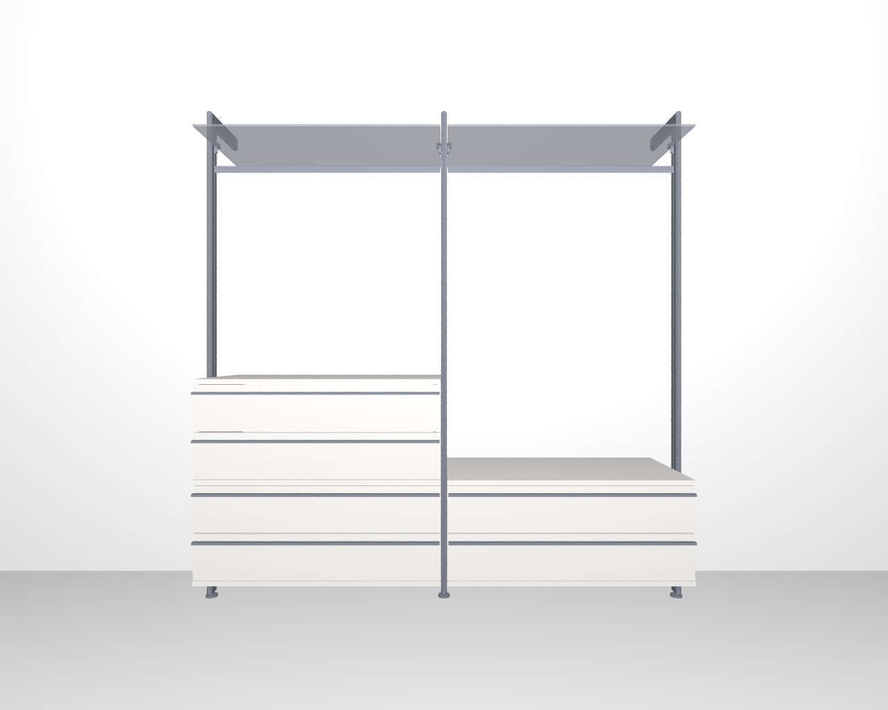 Die offene Bauweise ermöglicht schnellen Zugriff und eine übersichtliche Darstellung Ihrer Garderobe. Das modulare System lässt sich später erweitern - für wachsende Ansprüche an ein begehbares Schlafzimmer.