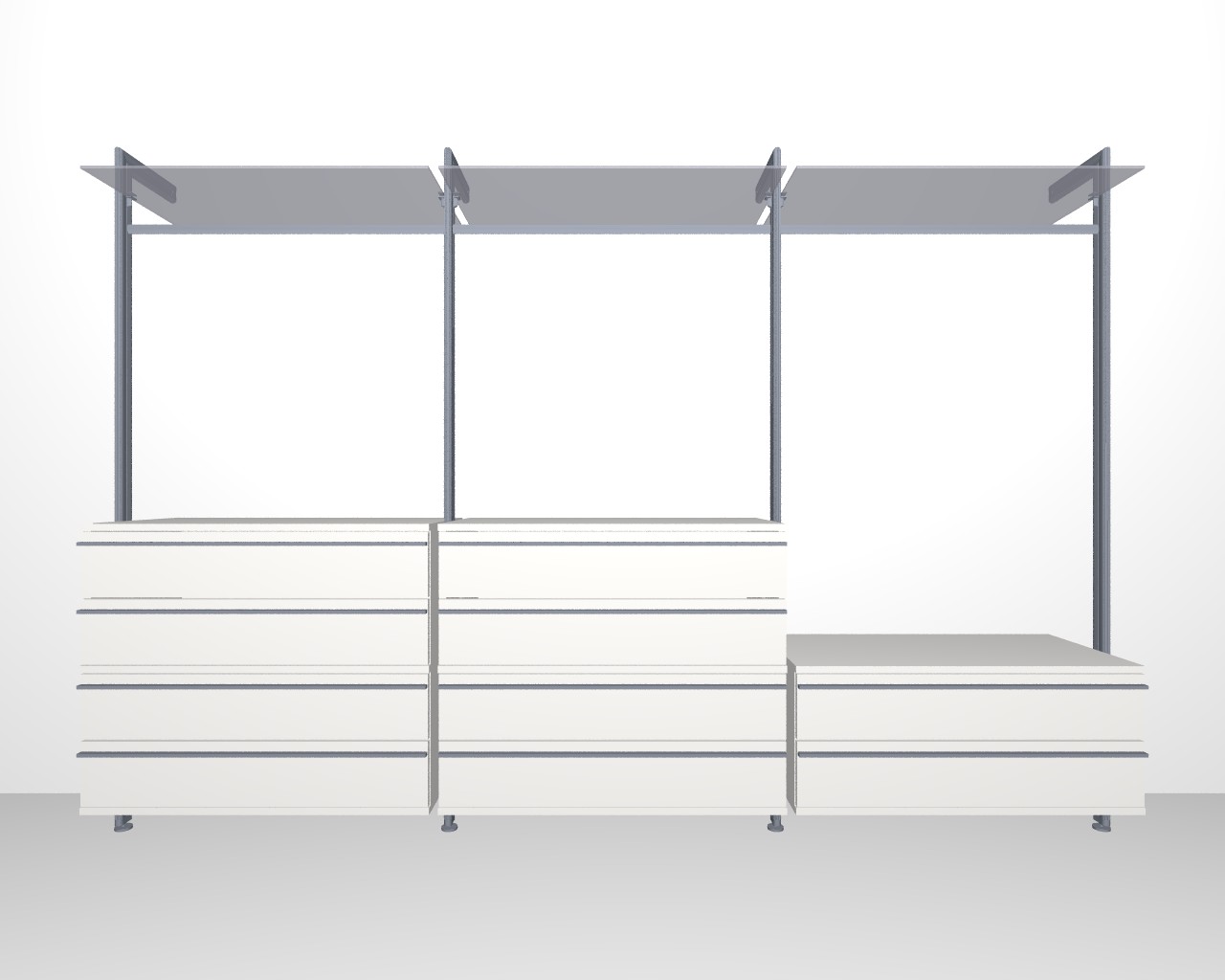 Offener Kleiderschrank STAR Breite 335 cm | 10 Schubladen, Glasböden (ohne LED)