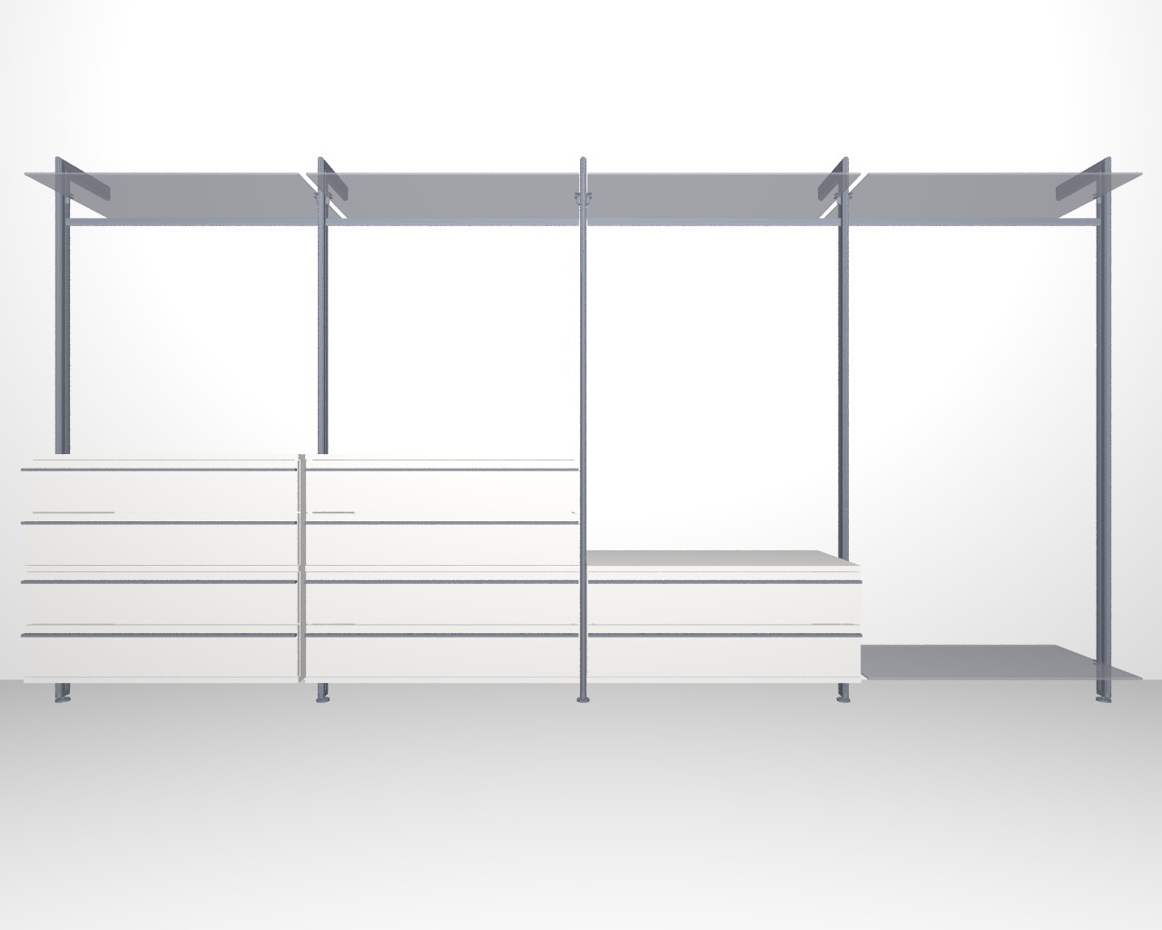 Offener Kleiderschrank STAR Breite 415 cm | 10 Schubladen, Glasböden (ohne LED)