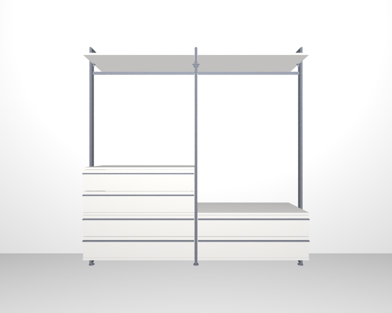 Die offene Bauweise ermöglicht schnellen Zugriff und eine übersichtliche Darstellung Ihrer Garderobe. Das modulare System lässt sich später erweitern - für wachsende Ansprüche an ein begehbares Schlafzimmer.