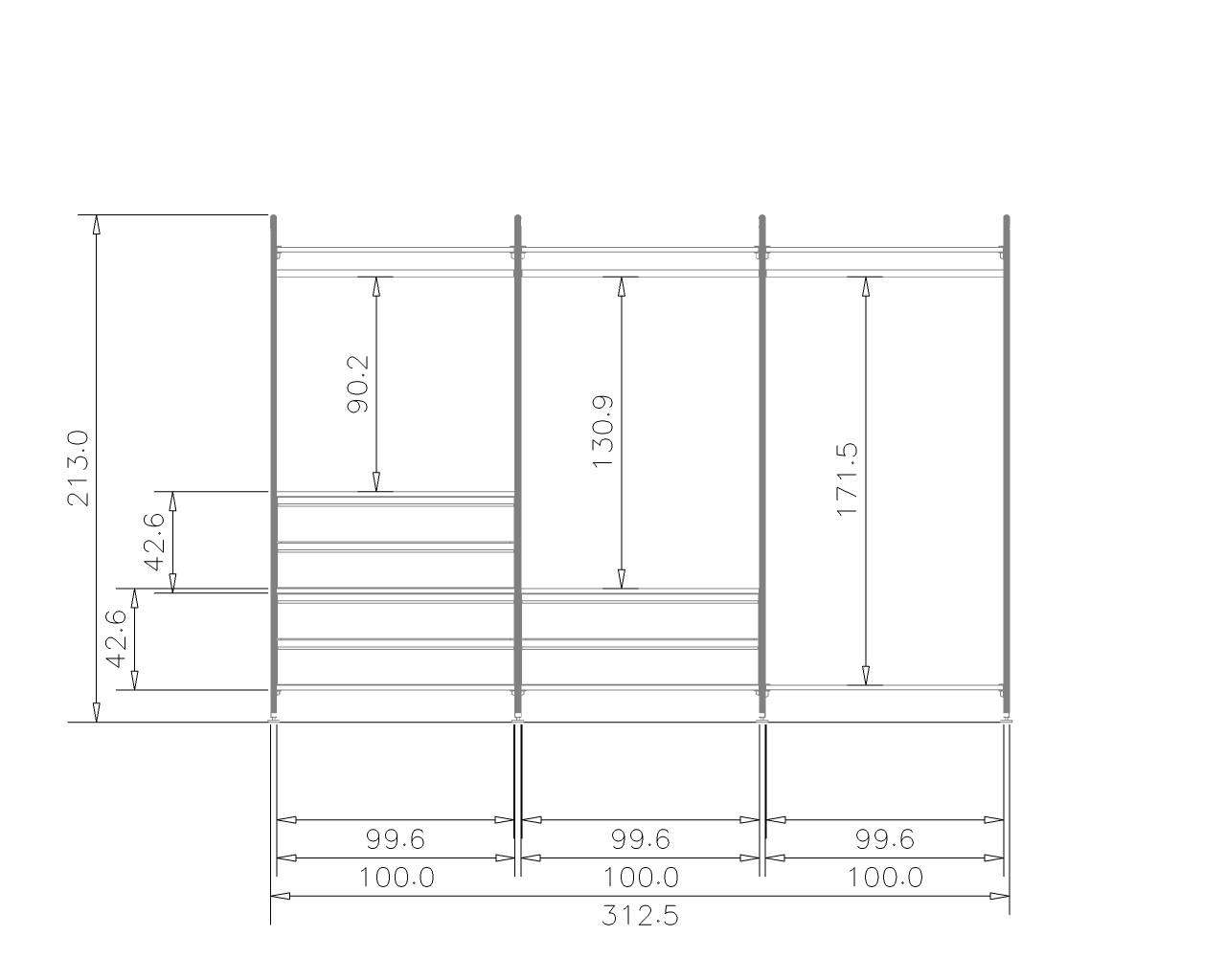 Breite: 335 cm | Höhe: 213 cm | Tiefe: 54 cm | Toleranzen möglich | Stellfuß 15 mm heraus | Montage: Selbstmontage mit Anleitung