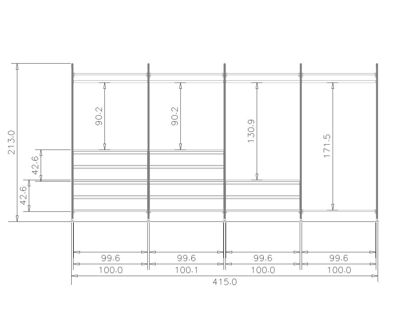 Offener Kleiderschrank STAR Breite 415 cm | 10 Schubladen, Holzböden (ohne LED)