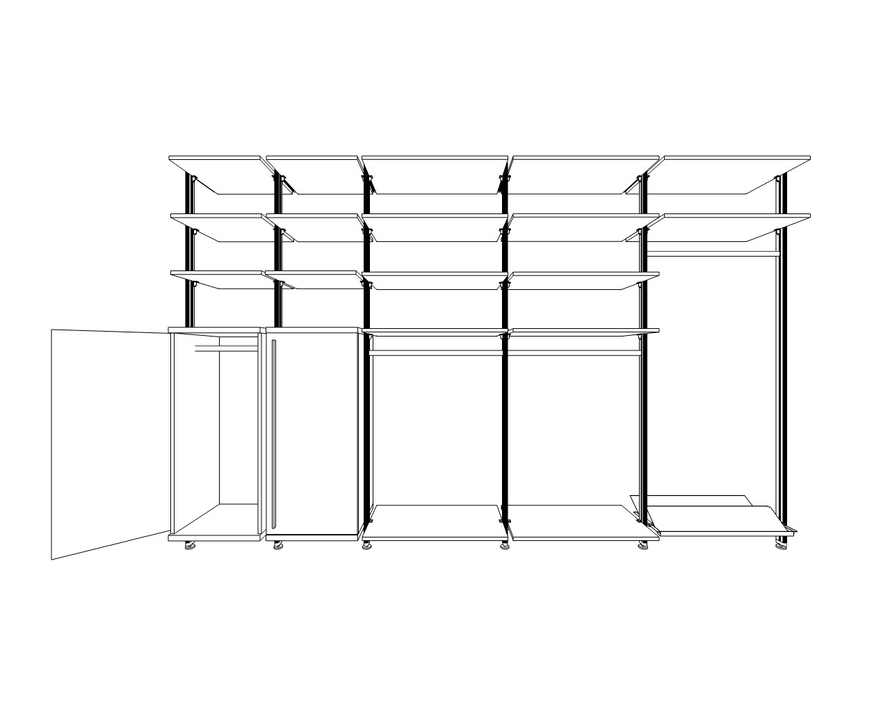 Die beiden Hochschränke mit 124 cm Höhe sind mit zwei Einlegeböden sowie einer Kleiderstange ausgestattet. Sie bieten viel Stauraum für Ihre Kleidung sowie Taschen. Auf den drei Kleiderstangen in 80 cm haben Ihre Hemden/Blusen sowie Jacken ihren Platz. Sollte das noch nicht ausreichen, lässt sich der Kleiderschrank PURE Ihren Wünschen leicht anpassen und erweitern.