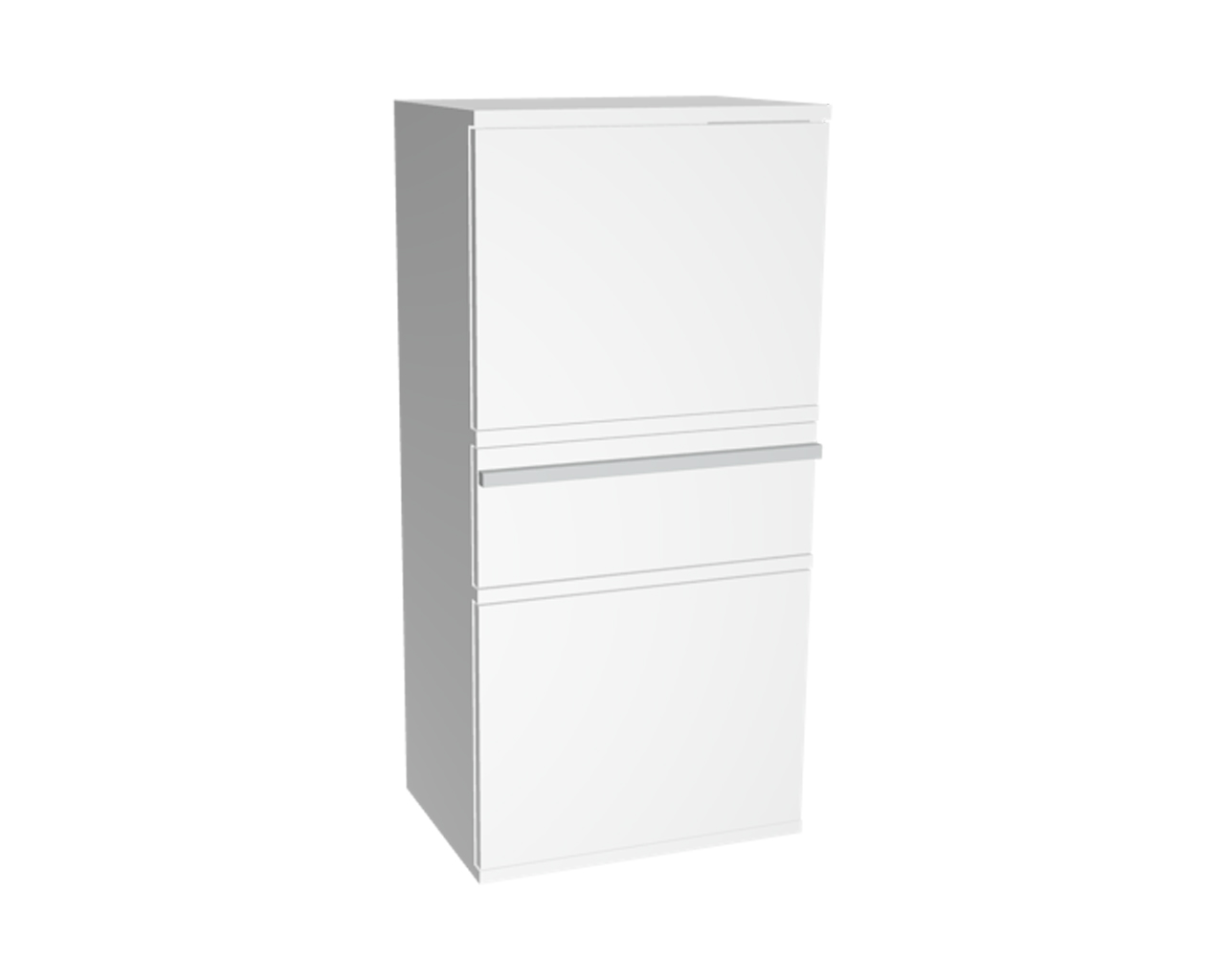 3er Schrankelement in Modulbauweise mit zwei Türelementen sowie einer Schublade in Weiß in Tiefe 36,0 cm und Breite 50,0 cm.