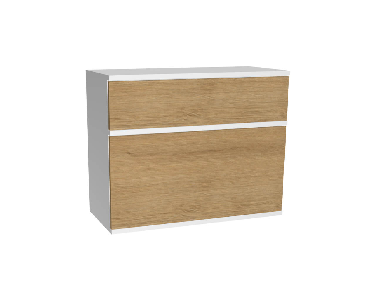 2er Schrankelement mit 1 Schublade grifflos + 1 Klappe | Wildeiche