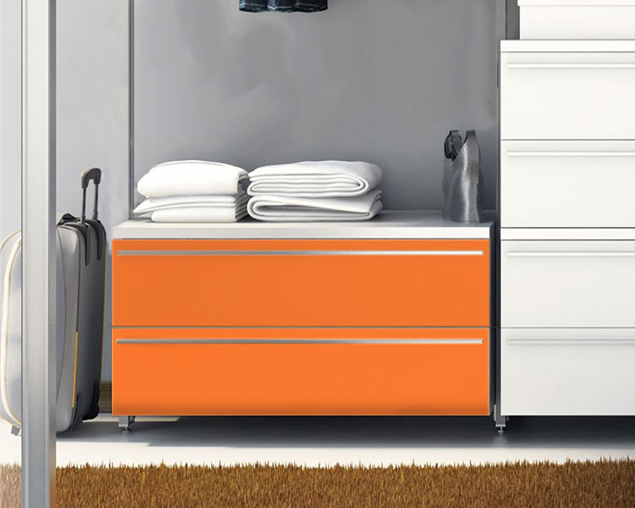 Schrankelement mit zwei Schubkästen in Orange in Systemtiefe 52,0 cm und 3 Systembreiten erhältlich.